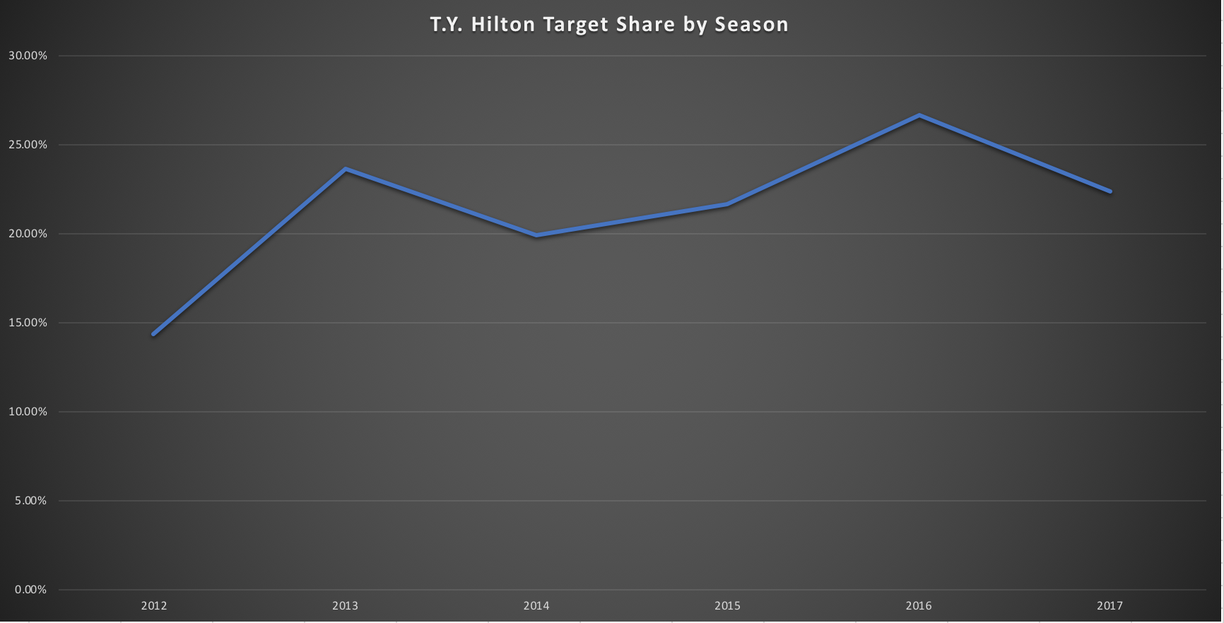 Many people will incorrectly blame all of the Colts’ offense’s ineptitude last season on Andrew Luck missing from the equation, but that is only a piece of the puzzle. One major issue was a decline in total offensive plays. In 2017 the Colts ran just 994 plays after a three-year average of 1,065 plays. Combine that with the drop in pass attempts from 627 in 2016 to 542 last season, and you can see how T.Y. Hilton’s numbers took a nosedive despite posting the second-highest average yards per reception of his career. With Reich calling plays and a healthy Luck at the helm, the Colts should regain more than a full game’s worth of plays over the course of the season. The return of Luck also means the return of an up-tempo, pass-heavy approach that the protectionist agency of Pagano and Associates did not employ last season. Fantasy owners often have short memories, so it’s worth noting that as recently as 2014, Luck and the Colts had the most prolific offense in the NFL.