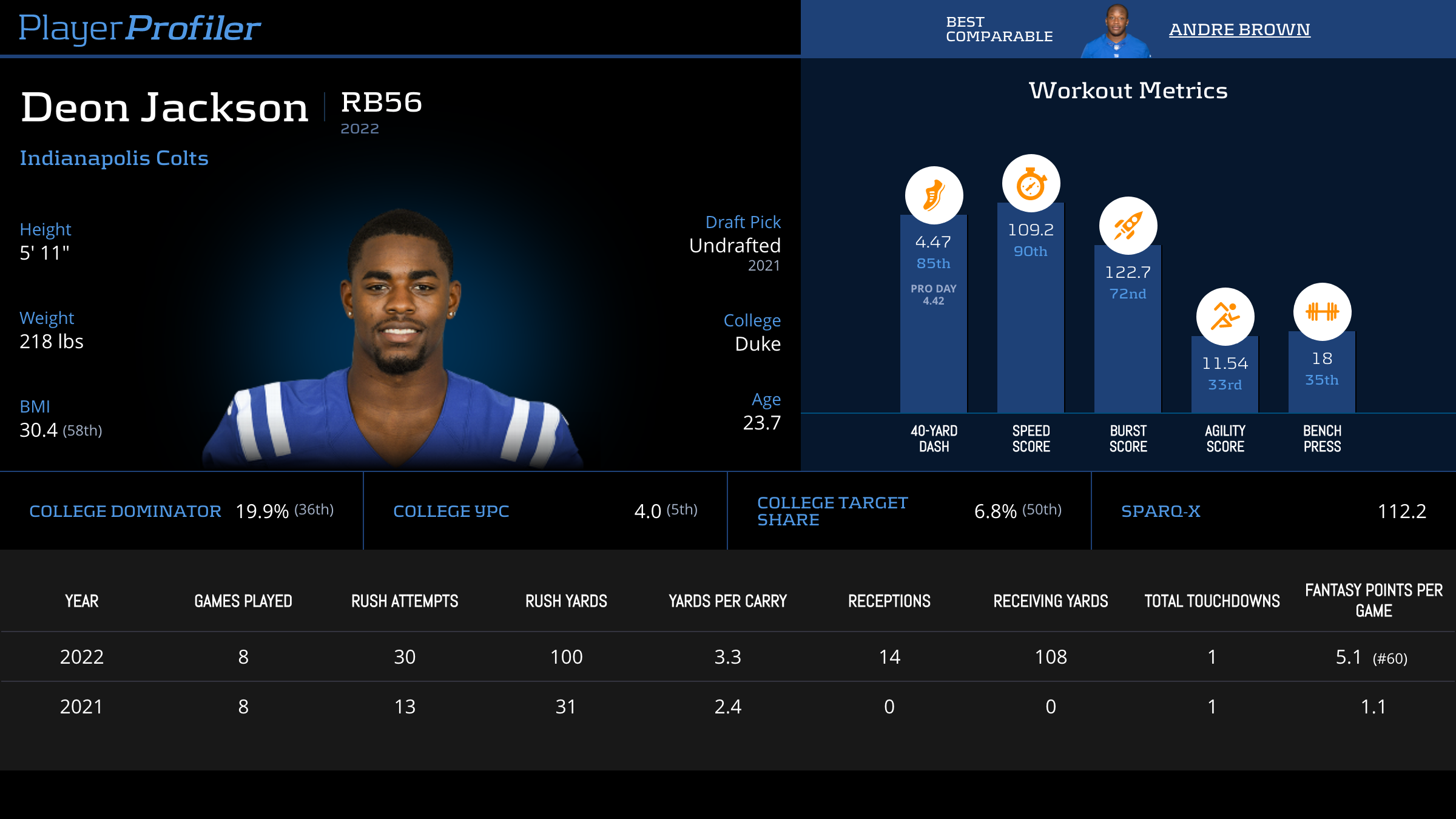 Deon Jackson Advanced Stats & Metrics Profile