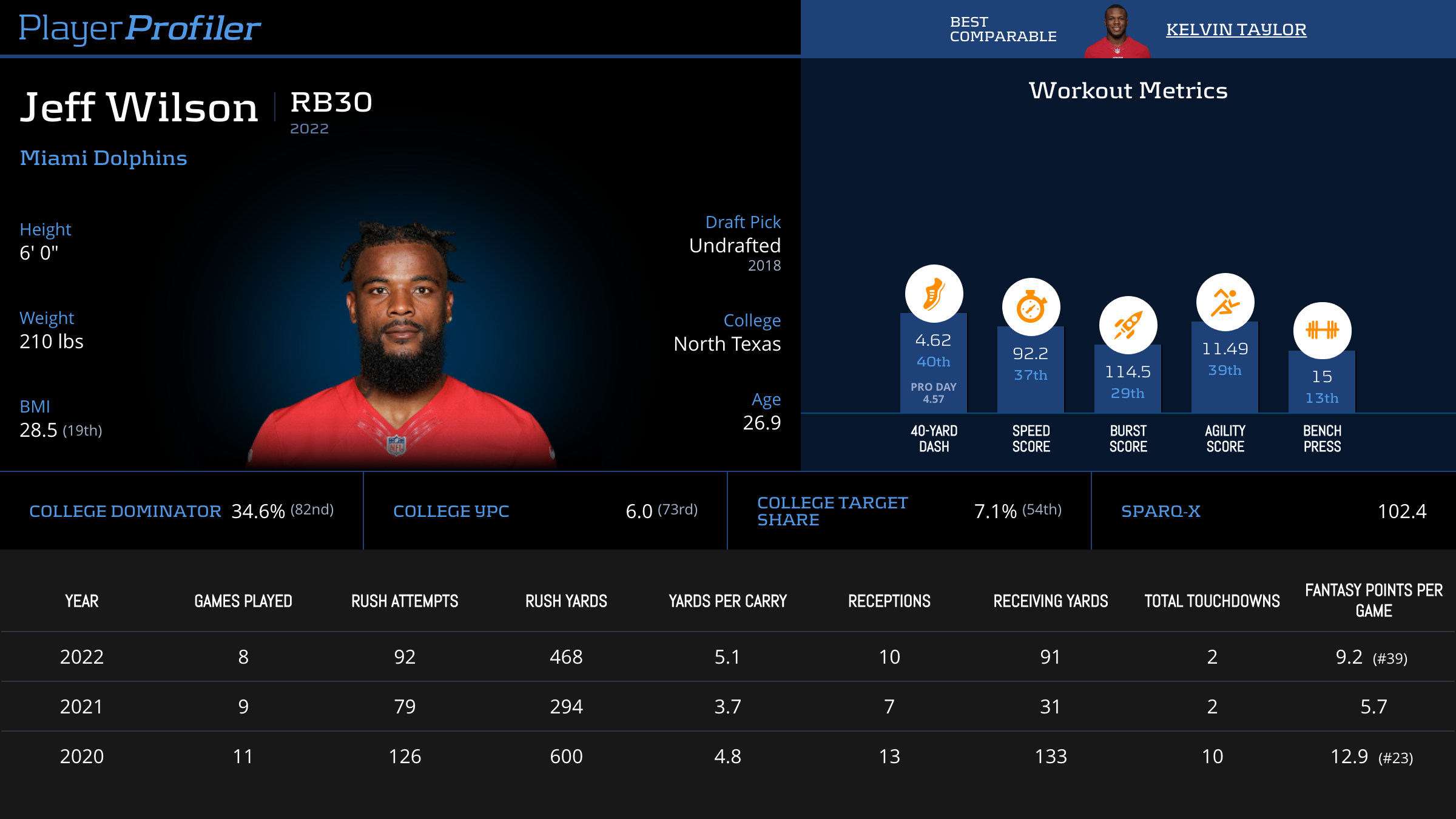 Jeff Wilson Advanced Stats & Metrics Profile
