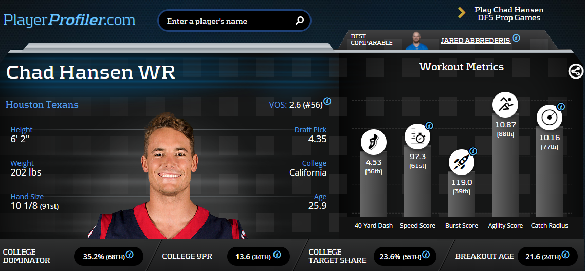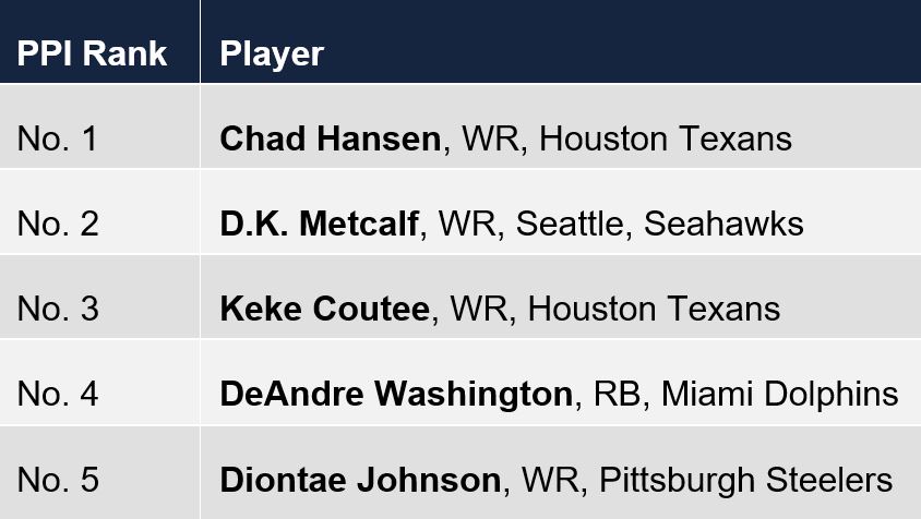 Fantasy Implications: Metcalf’s rise to No. 1 in PlayerProfiler’s dynasty wide receiver rankings makes him a challenging dynasty acquisition. Fantasy managers may need to make any offer a “Godfather” offer at this point. In redraft, he projects to appear on league-winning squads in all formats.