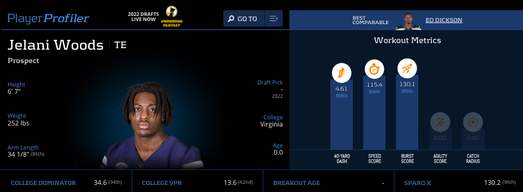 No. 132 – Green Bay Packers – Jelani Woods, TE – Virginia