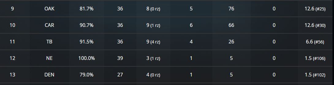 Remember that one touchdown he scored as a 6-3 wide receiver with a 124.6 (70th-percentile) Burst Score? He pretty much came off the assembly line ready for end-zone duty, so his touchdown luck should shift this year.