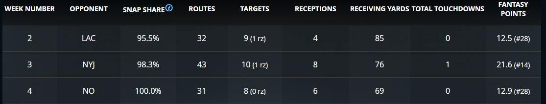 Upon closer inspection, he actually had a very strong start to the season, averaging 15.7 fantasy points over his first three games.
