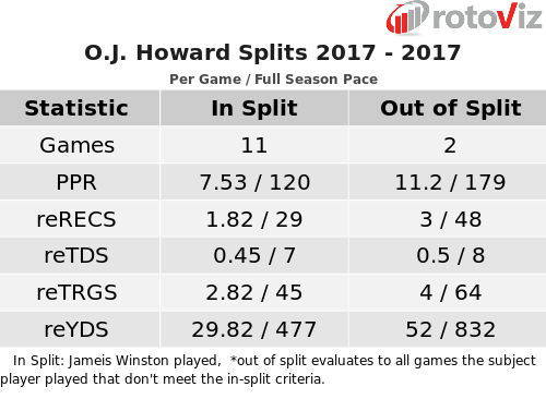 O.J. Howard splits without Jameis Winston in 2017 via RotoViz