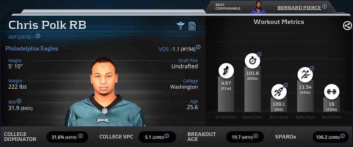 PHL really liked Chris Polk for a bit. Kept him on ’14 roster even though he was hurt all preseason. Gave him goal-line ahead of McCoy late.