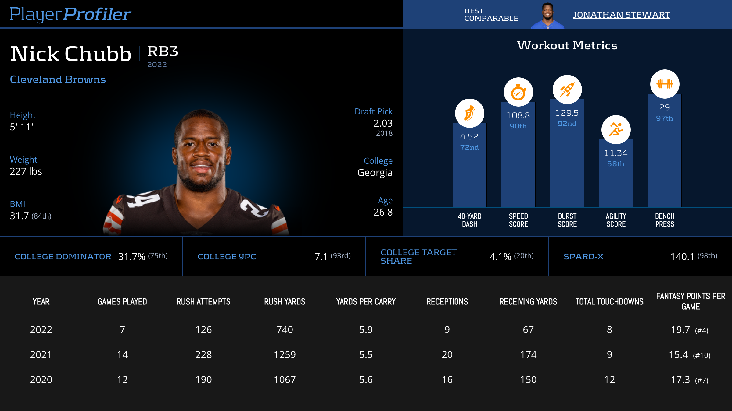 Nick Chubb Advanced Stats & Metrics Profile