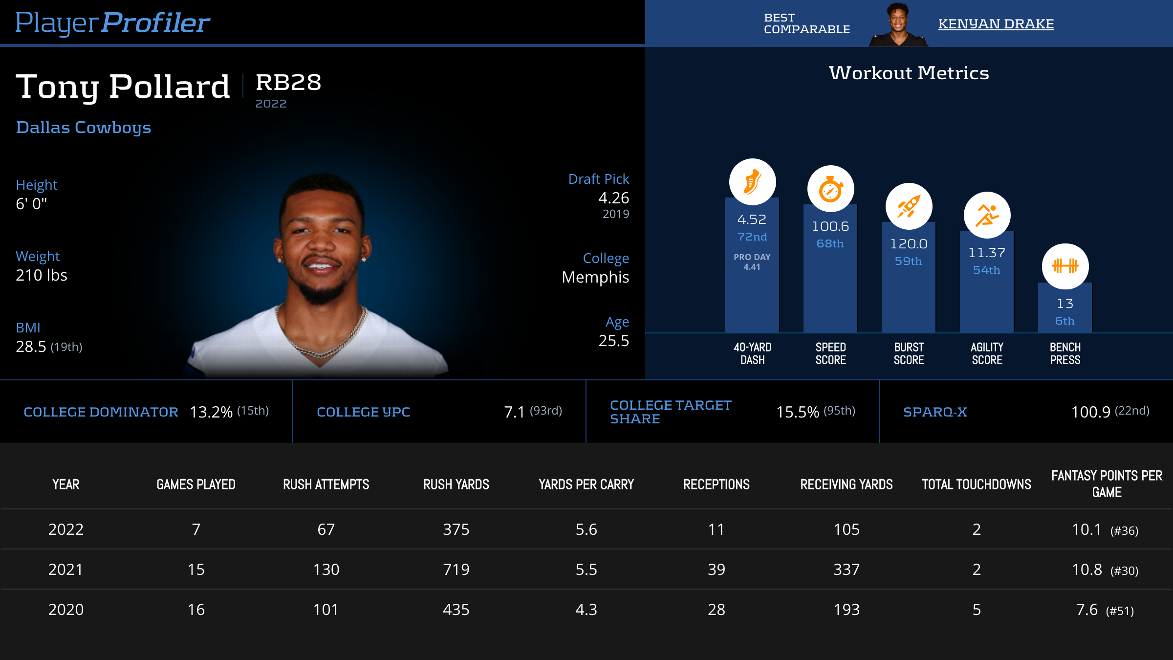 Tony Pollard Advanced Stats & Metrics Profile