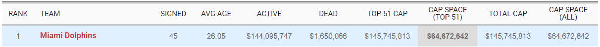 Unlike the other two teams on here, the Miami Dolphins have a new head coach, controversy surrounding the owner, and a QB still doubted to be the franchise’s future. They do have one thing: the most cap space in the league.