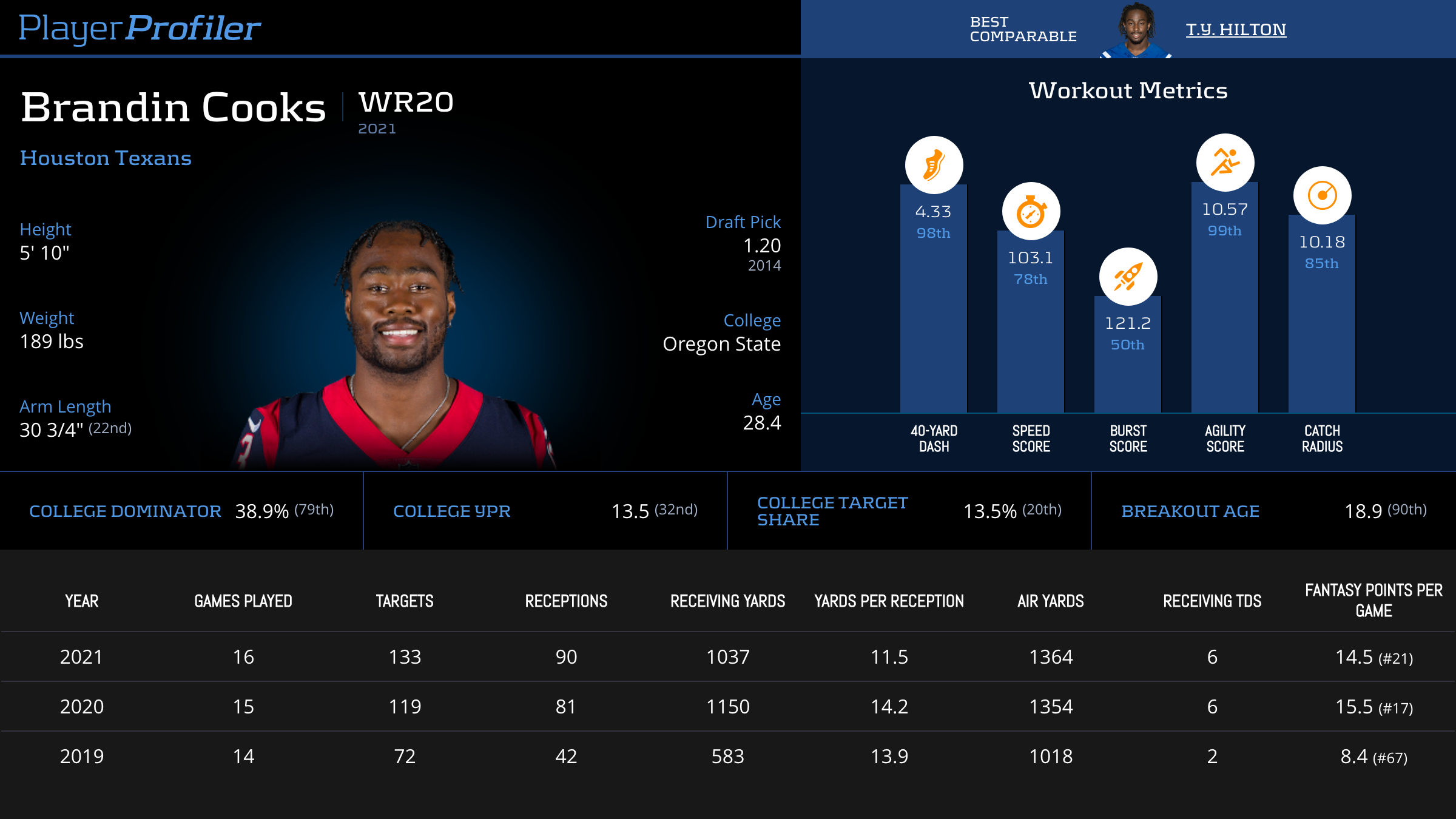 Brandin Cooks Advanced Stats & Metrics Profile