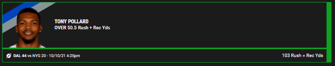 Tony Pollard OVER 50.5 Rush + Rec Yds
