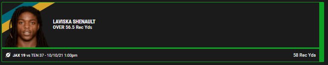 This pick hit for all the wrong reasons. I touted Laviska Shenault because I believed that he would receive a bump in targets with the absence of D.J. Chark. However, his 6.75 targets per game through Week 4 dropped to three targets in Week 5. His lone reception of 58 yards bailed me out of this one.