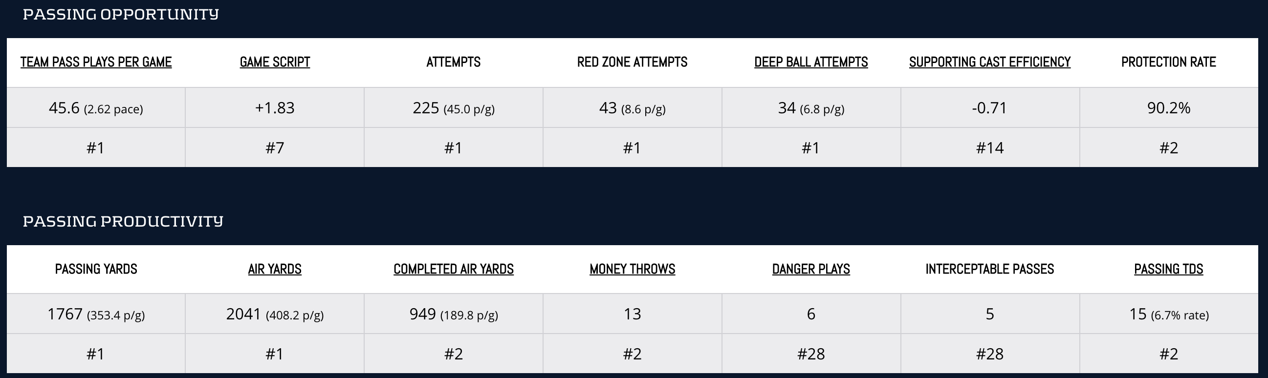 Jalen Hurts doesn’t have accuracy problems. He has a 7.5 (No. 17) Accuracy Rating and 12 (No. 4) Money Throws. The Konami Code QB can do it all. The Eagles offense may be struggling as of late, but it hasn’t affected Hurts’ fantasy production. He’s averaged 25.0 (No. 7) Fantasy Points Per Game and now faces off against the league’s worst pass defense. It’s wheels up.